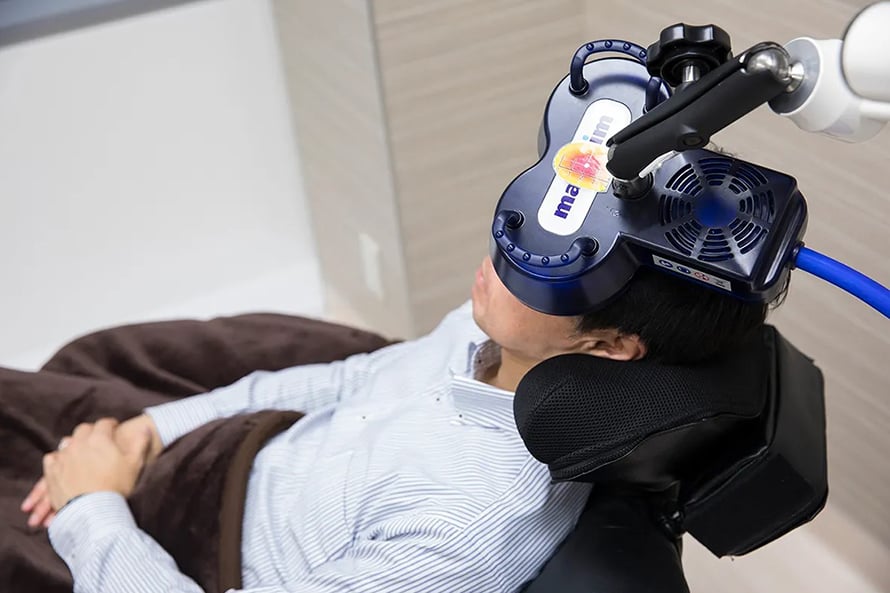 TMS(経頭蓋磁気刺激)治療は、頭部に磁気コイルを当てて、脳の特定の部位に磁気刺激を与える治療法です。
